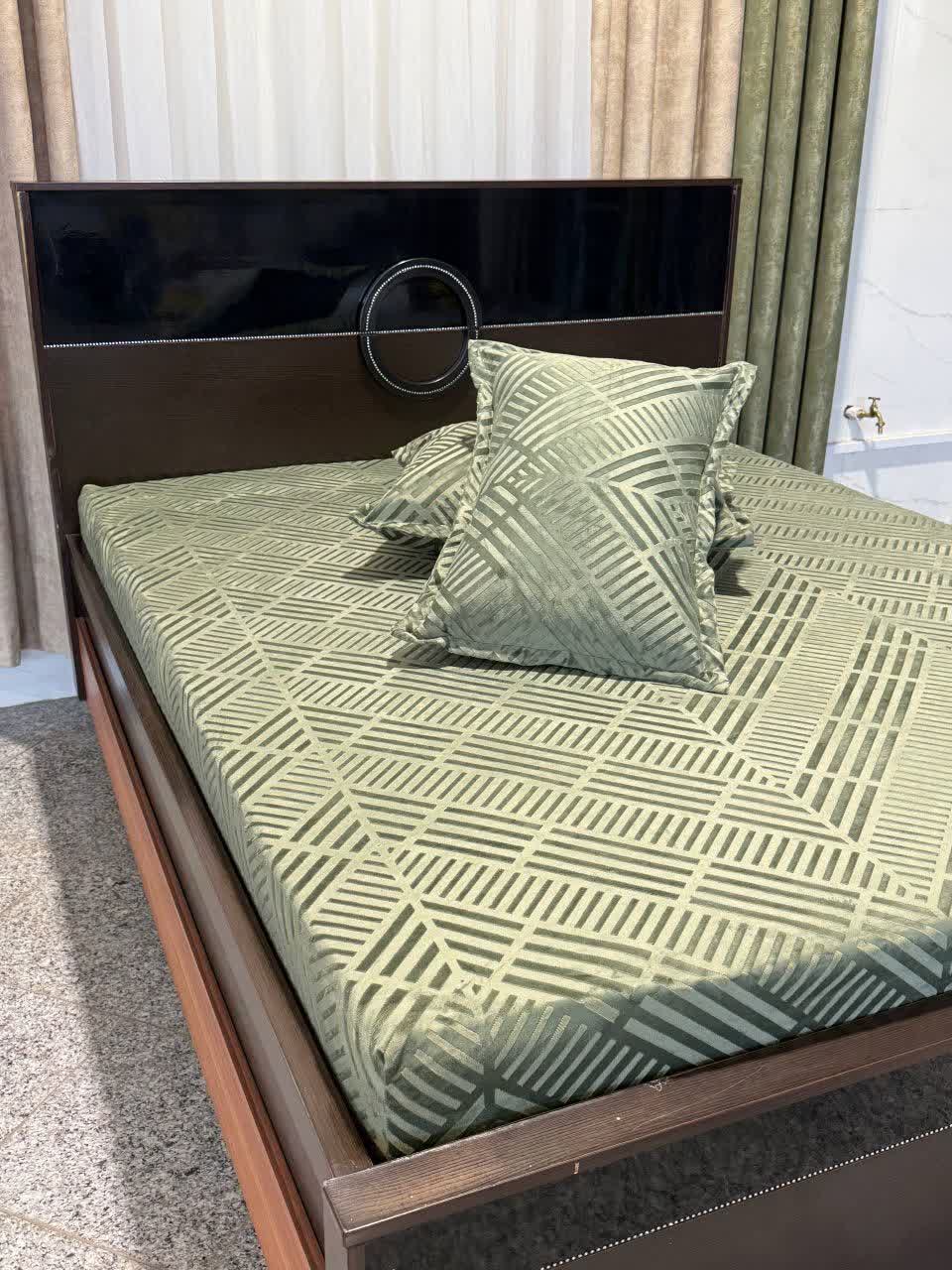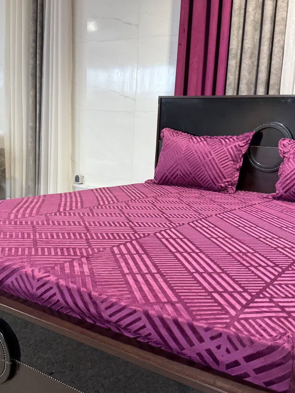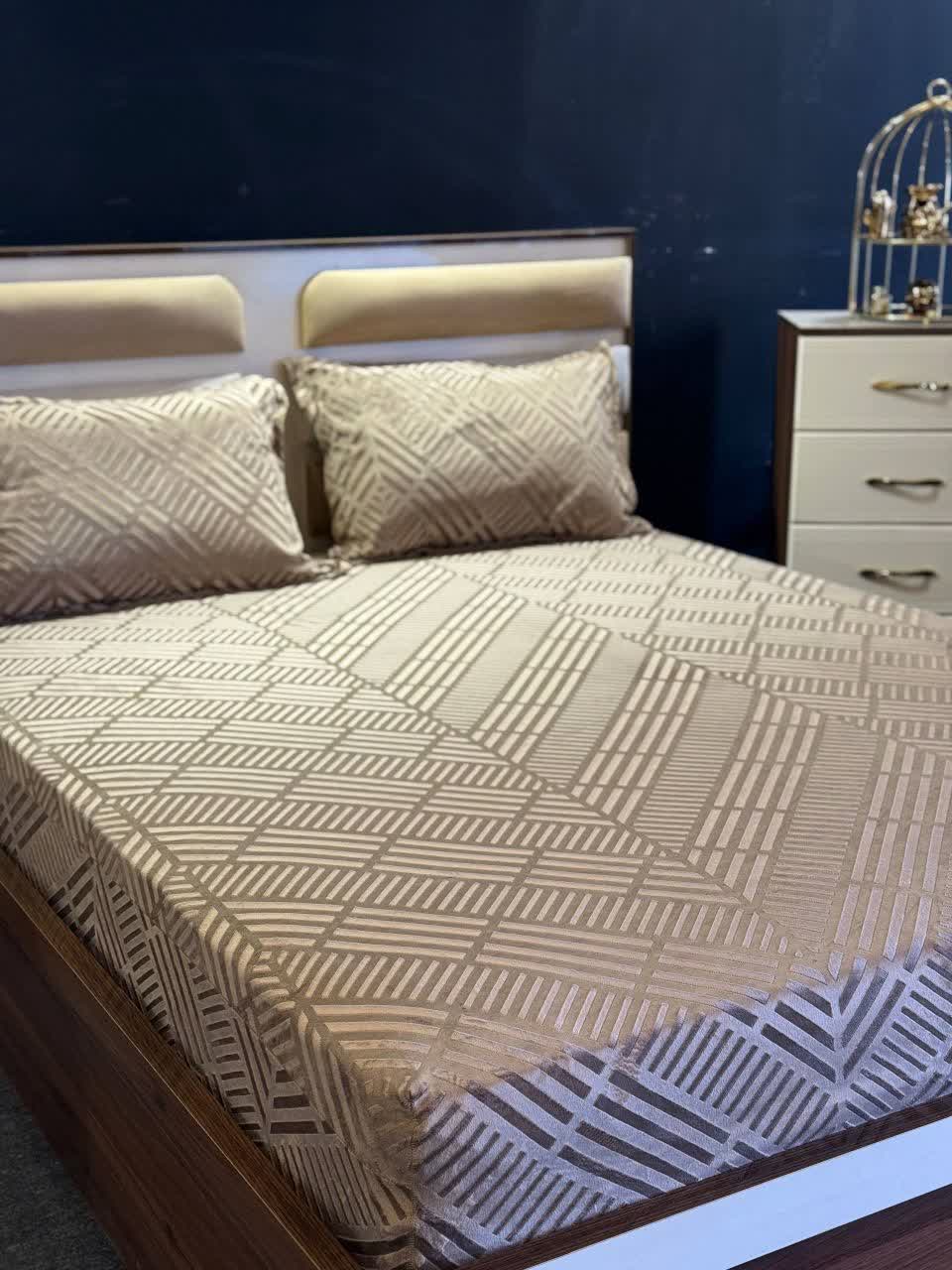 کاور تشک مخمل و روبالشت طرح کج راه تخت 160